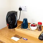 Tyto místnosti mají mikrovlnnou troubu, chladničku a toustovač.